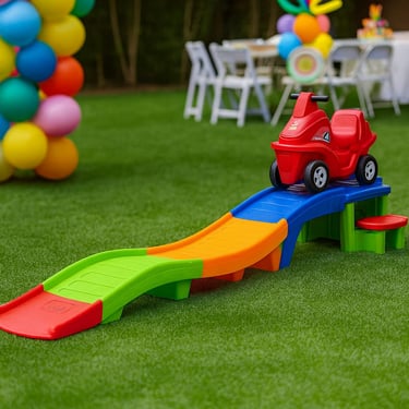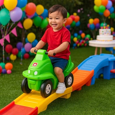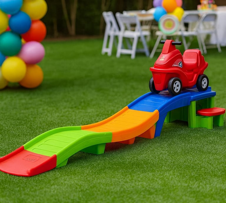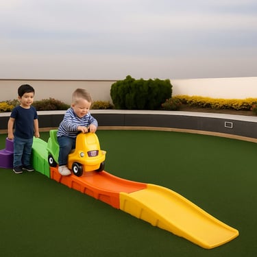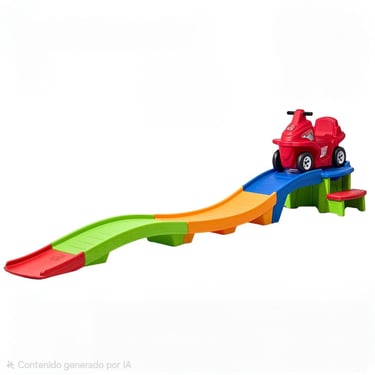 "Mini Montaña rusa, Ideal para niños de 2 a 5 años, este juego ofrece una bajada suave y divertida con un carrito estable y seguro. La pista de colores incluye una pequeña subida y descenso que estimula la coordinación y el equilibrio.
